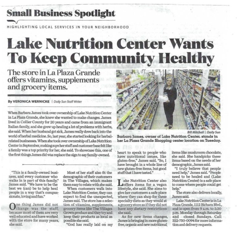Lake Nutrition Center has been The Villages premier choice for high quality vitamins, supplements, and nutritional support for more than 25 years.
